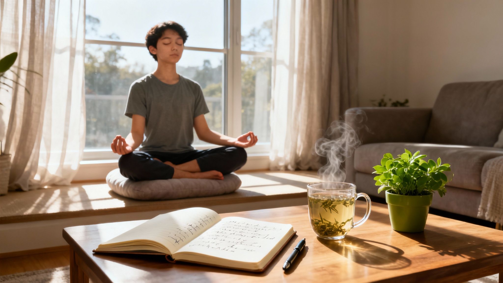 - Movement: A simple 20-minute walk or gentle stretching lowers cortisol without a full gym workout.